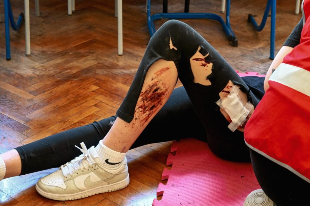 Praktični dio: Pružanje prve pomoći na realističnim radilištima s glumcima koji su simulirali različite ozljede.